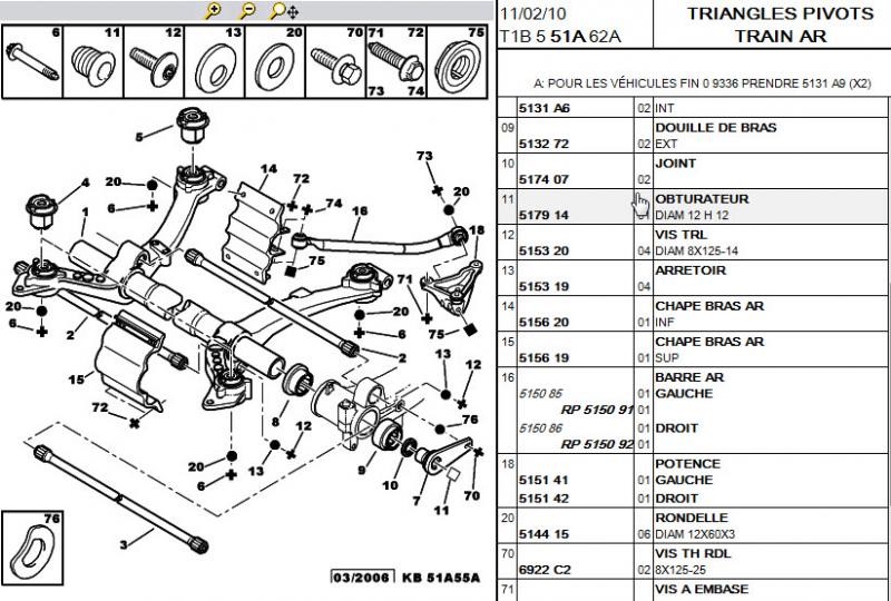 Schéma de train arrière 206 SW